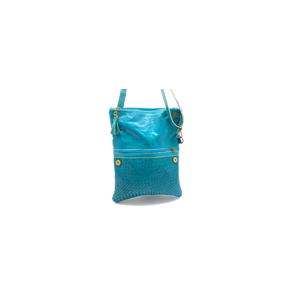 Dámská kožená kabelka proplétaná tyrkysová MagBag