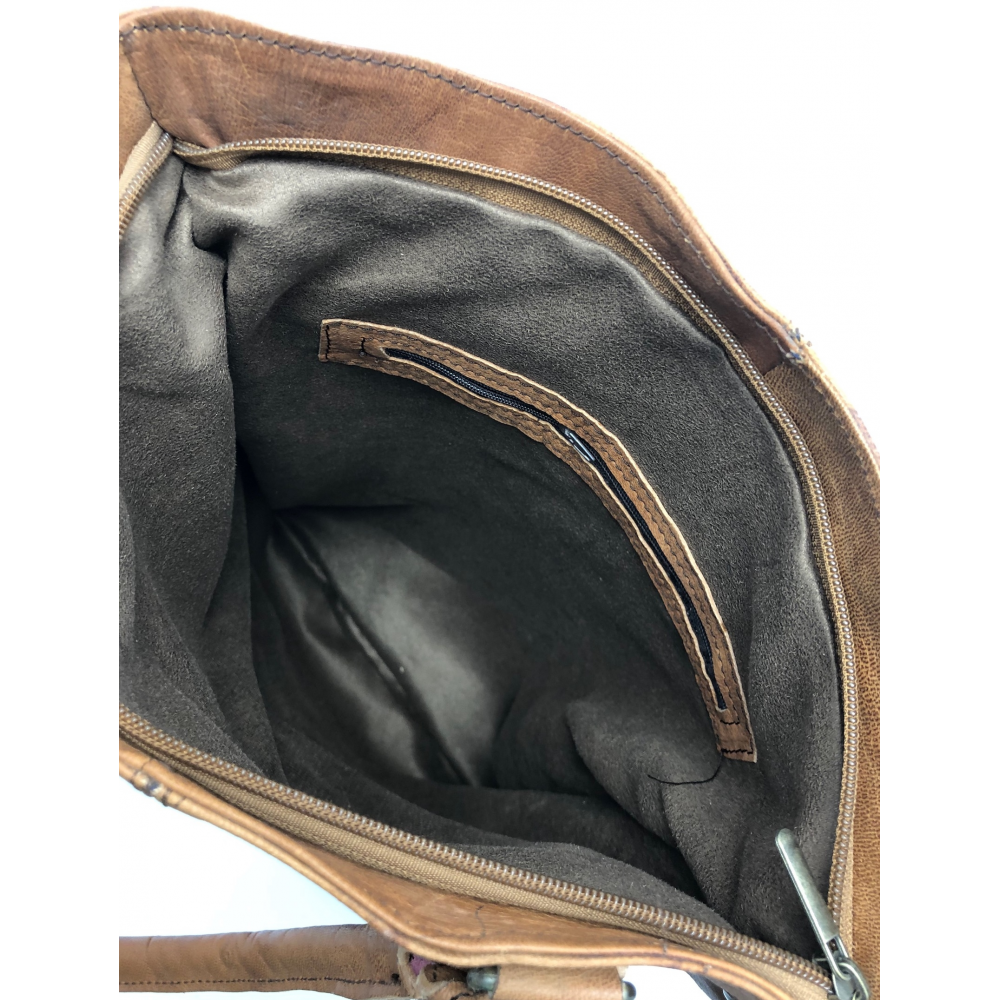 Kožená kabelka z jemné hovězí kůže ručně šitá. Kabelka je z boku ozdobena čtyřmi ozdobnými kroužky, které dolaďují její moderní vzhled. Z jedné strany ma kabelka z venkovní strany jednu kapsu na zip, z druhé strany dvě menší kapsičky na zip, kam pohodlně uložíte svoje drobnosti a cennosti. Kabelka má podšívku a na zadní straně uvnitř kabelky malou kapsu na zip. Kabelka má dvě středně dlouhé uši (26 cm) a jedno dlouhé nastavitelné, odepínací ucho (max délka 55 cm). Tuto kabelku si určitě zamilujete pro její jemnou kůži a krásný vzhled.