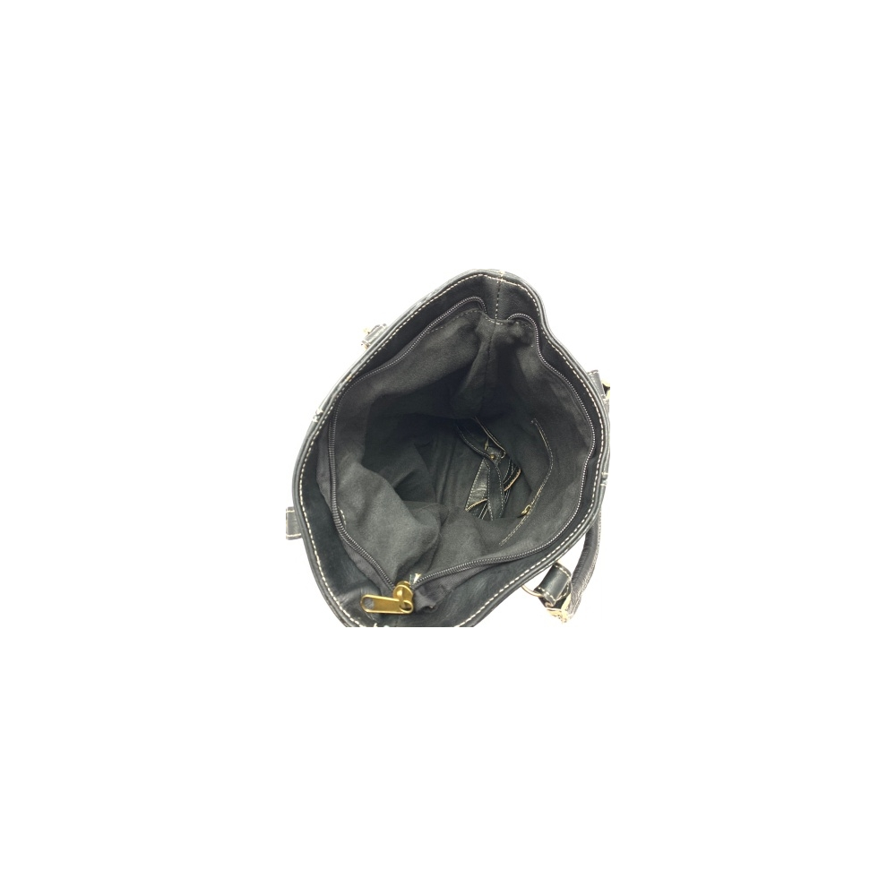Dámská kožená kabelka s ozdobnými kroužky černá