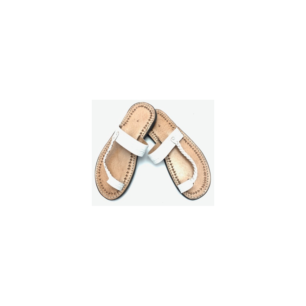 Dámské kožené pantofle propletený pásek bílé