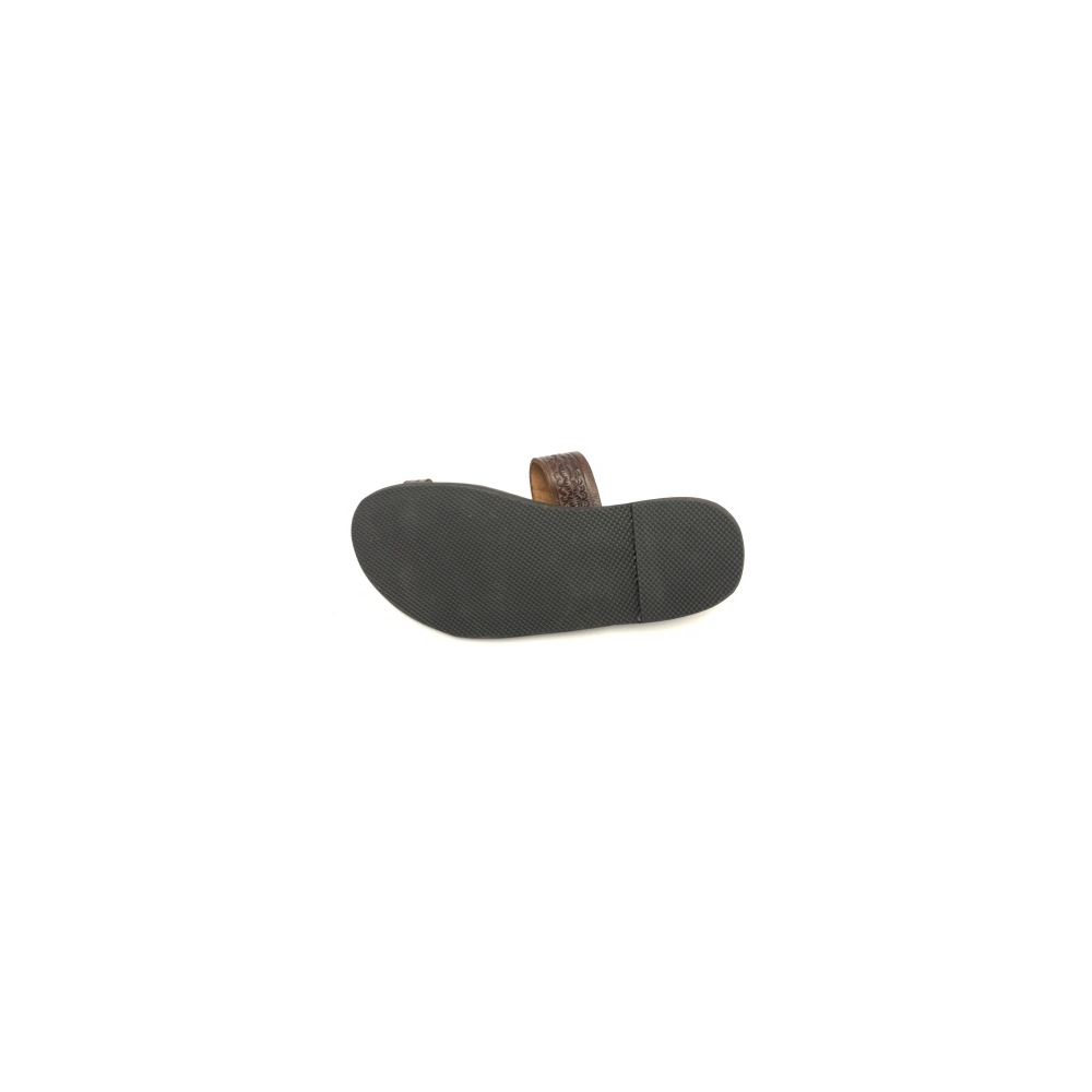 Pásek i podešev jsou z kůže, pásek z ručně barvené kůže bez chemických přísad, podrážka je z gumového materiálu.
