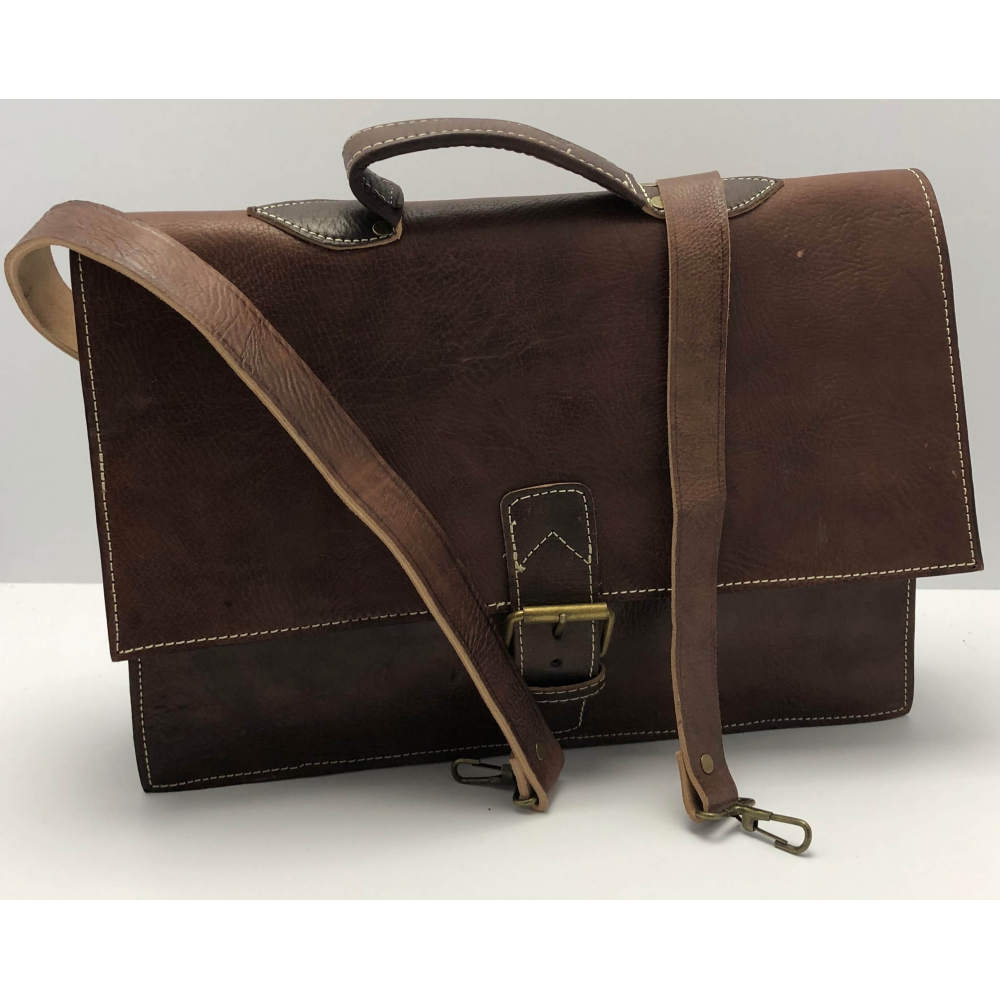Pánská kožená aktovka ručně šitá, krásně zpracovaná. Akovka má krátké ucho pro dobrou manipulaci a dlouhé nastavitlé ucho (max délka 73 cm), aby se Vám pohodlně nosila i na rameni. Aktovka je zapínací na jednu přezku. Uvnitř má aktovka dvě kapsy pro uložní Vašich věcí a dokumentů. Ze zadní strany aktovky je velka kapsa na zip.