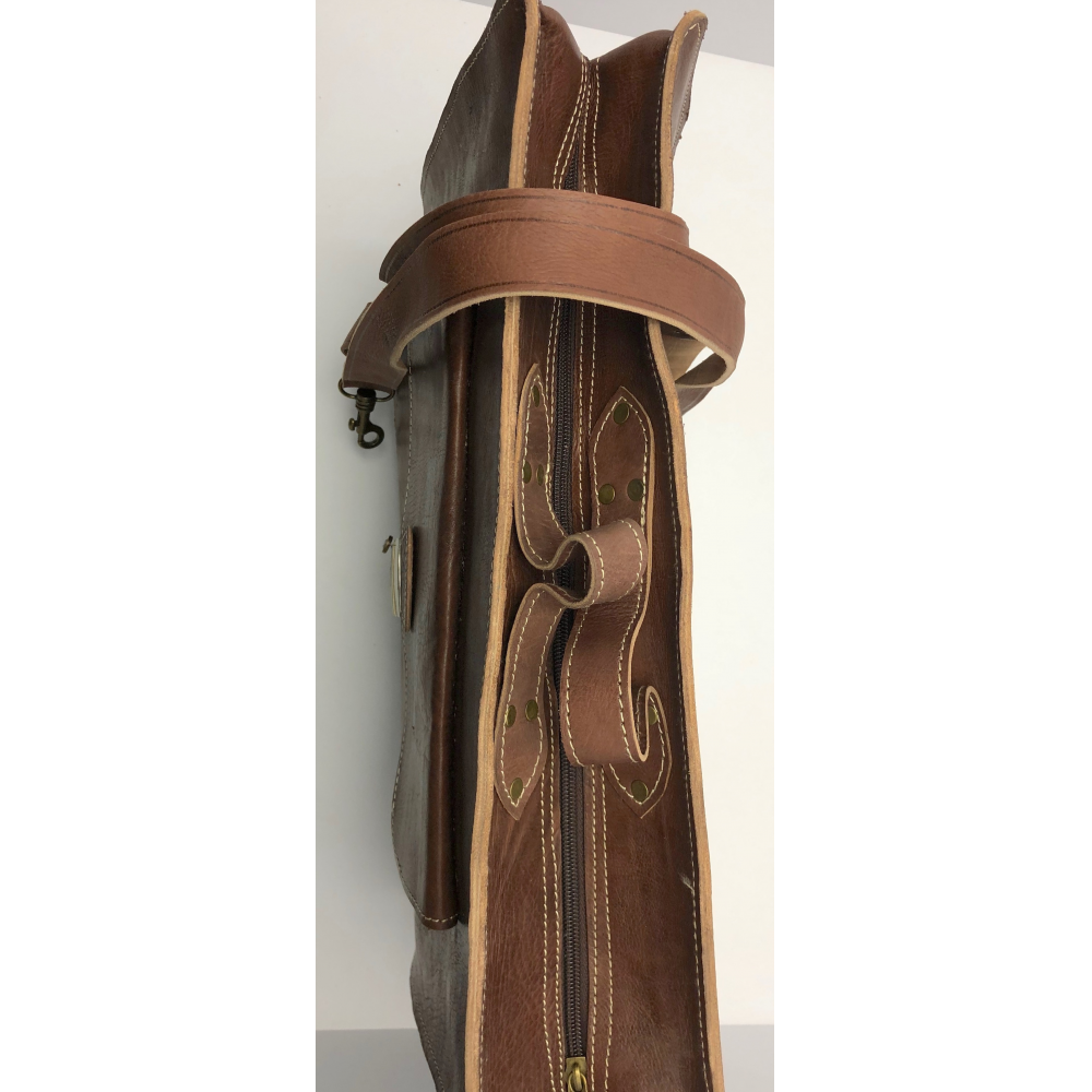 Cestovní taška kožená užší s dvěma krátkýma ušima jedním dlouhým nastavitelným (max. délka 68 cm). Taška má vpředu kapsu na přezku se zámečkem. Uvnitř je taška s podšívkou.