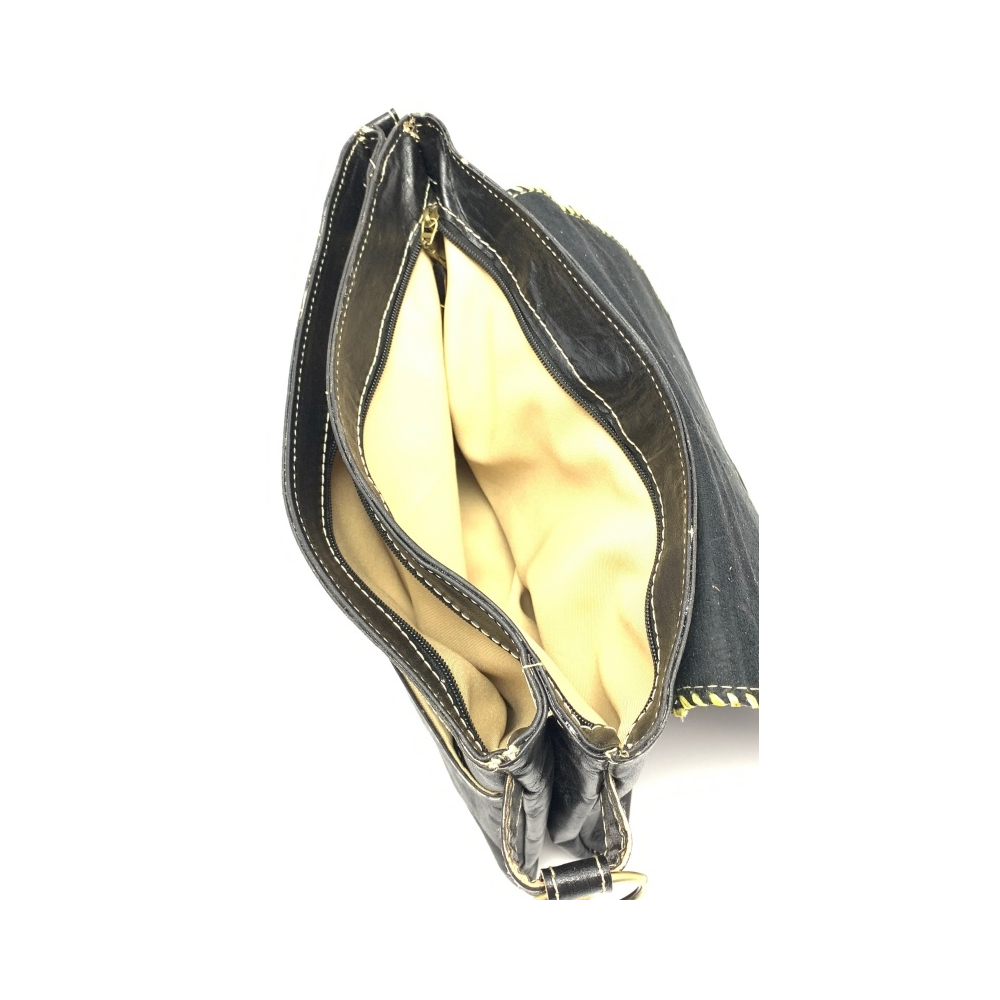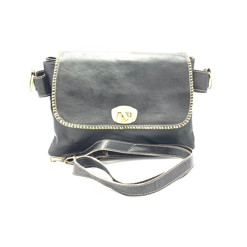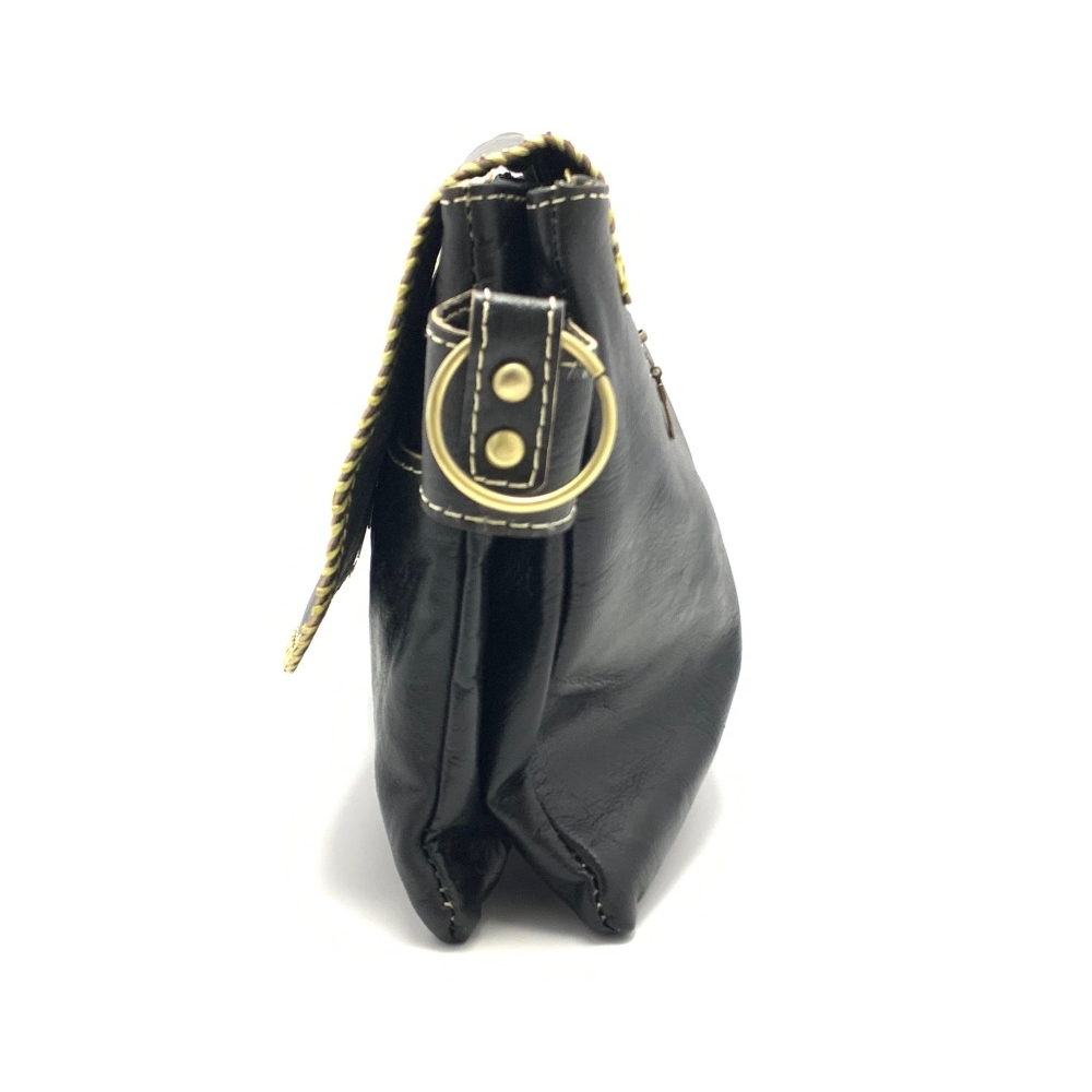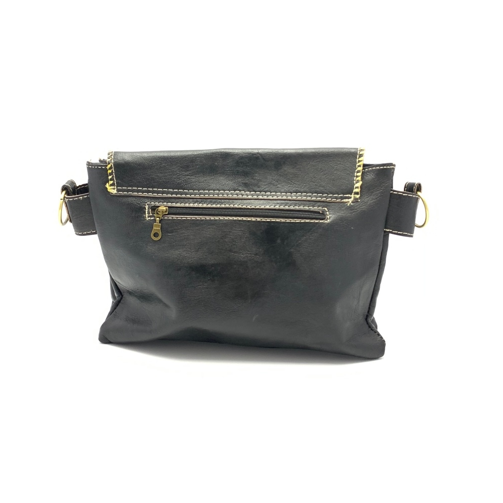 Dámská luxusní kožená kabelka ve tvaru psaníčka přes rameno je z ručně barvené kůže s ozdobným obšitím okolo víka kabelky.