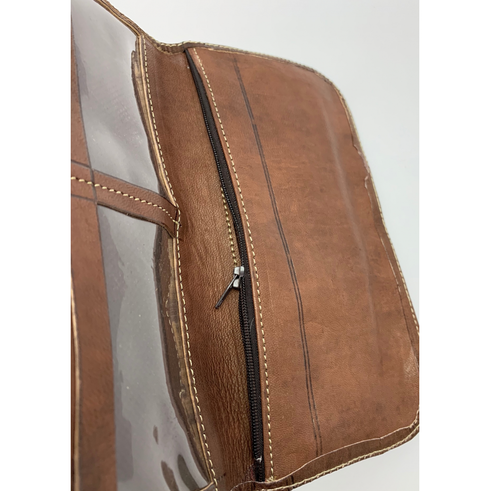 Dámská kožená peněženka velká zapínací na otočný knoflík. Peněženka se celá rozevře, má přihrádky na karty, kapsu na drobné mince zavírací na zip, přihrádku na peníze a velkou přihrádku po celé délce peněženky. Peněženka je v rozevřeném stavu velká 21 cm, zavřená 12 cm.