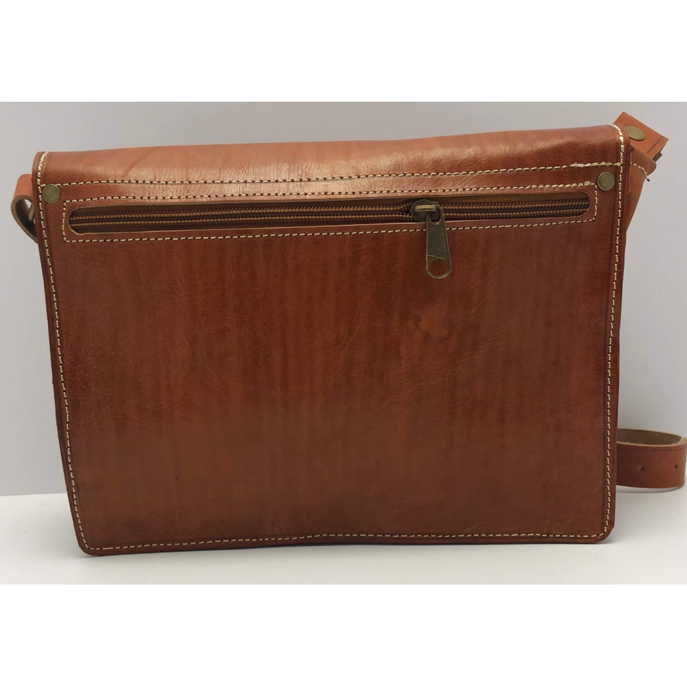 Krásně ručně zpracovaná unisexová taška z pevné kůže na dlouhé ucho (max 63 cm), které je nastvitelné. Jedná se o tašku ve tvaru obdelníku s překlopem zapínací na patentky. Na zadní straně je kapsa na zip přes celou délku tašky. Uvnitř je taška řešena jako jeden velký prostor, na zadní straně je kapsa na zip. Pod překlopem na přední straně tašky je kapsa přes celou tašku na zip pro Vaše drobnosti a jiné věci, kde je budete mít dobře oddelené od ostatích věcí. Taška bude krásným Vaším doplňkem.